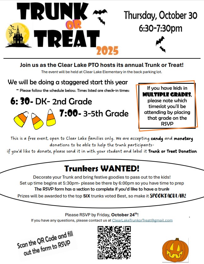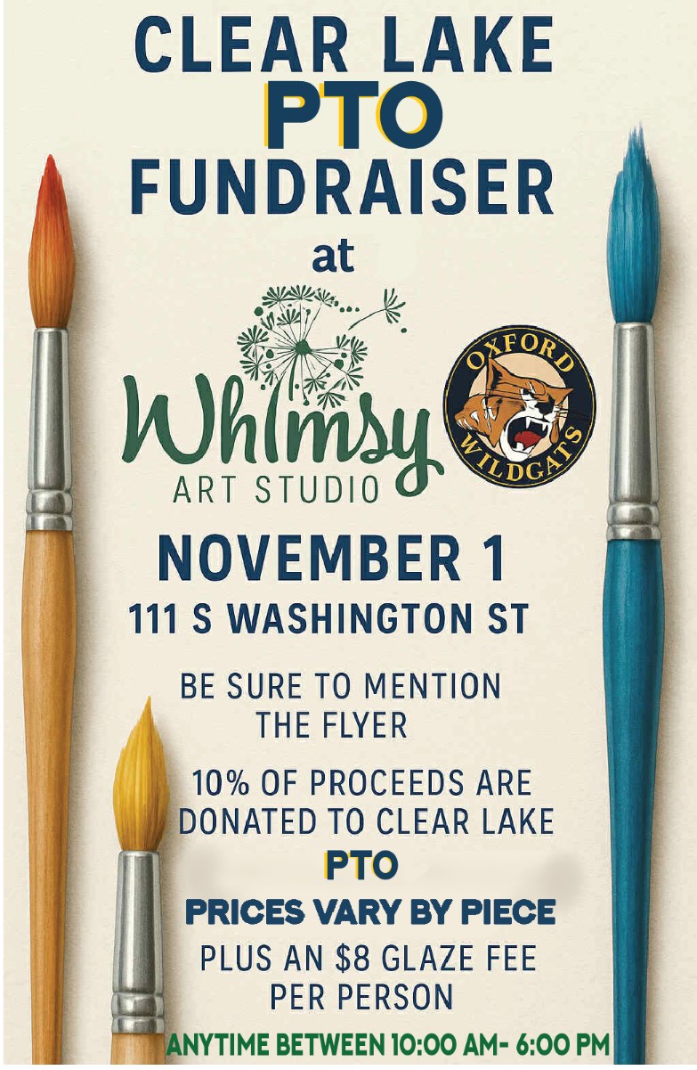 Clear Lake Sign: We are looking for a volunteer(s) who would like to start learning how to update the sign out front of the building that shows dates for different events. Our sign volunteer, Mrs. Squires, will help train and support the volunteer to get them ready to take over the role after this school year. If you are interested please email Mrs. Niemi at stephanie.niemi@oxfordschools.org.
