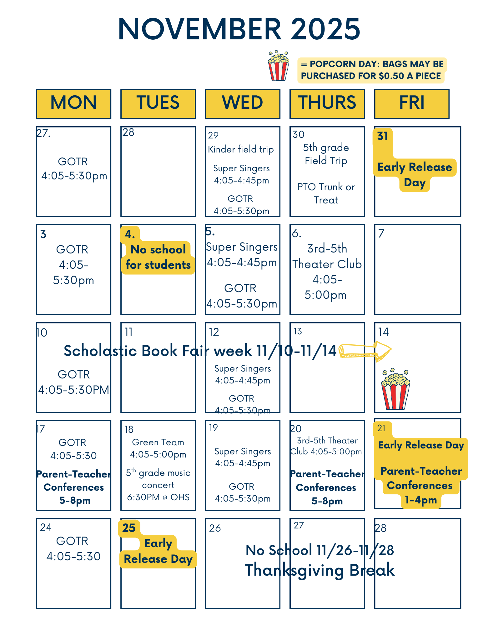 This is a reminder that Friday, 10/31/25 is an early release day. Please make sure to communicate to your child's teacher if there is a change in their afternoon dismissal.