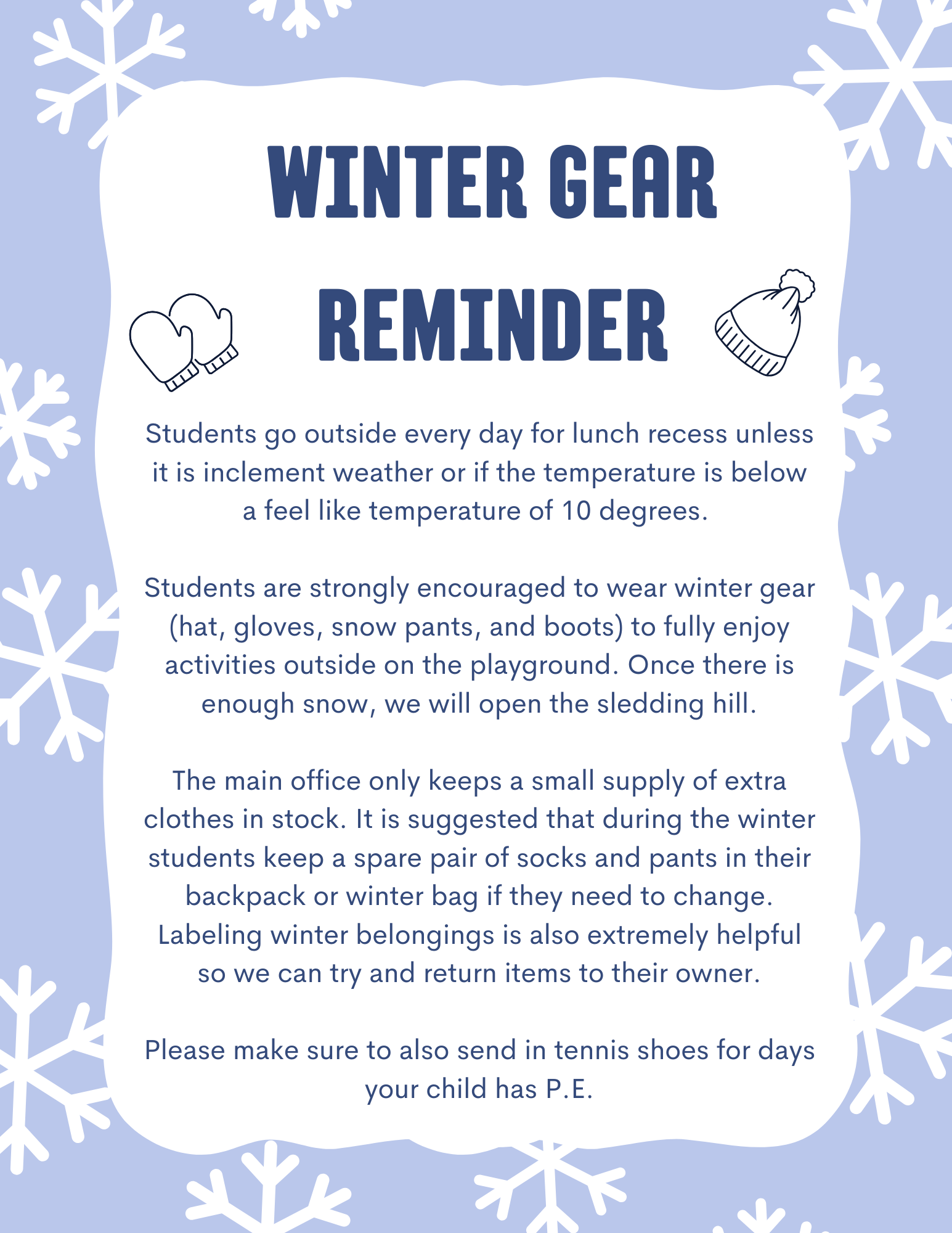 Yard signs for students who were absent or ride the bus are stored in the front vestibule by the main office. Signs are labeled and can be picked up by a parent/guardian during school hours.