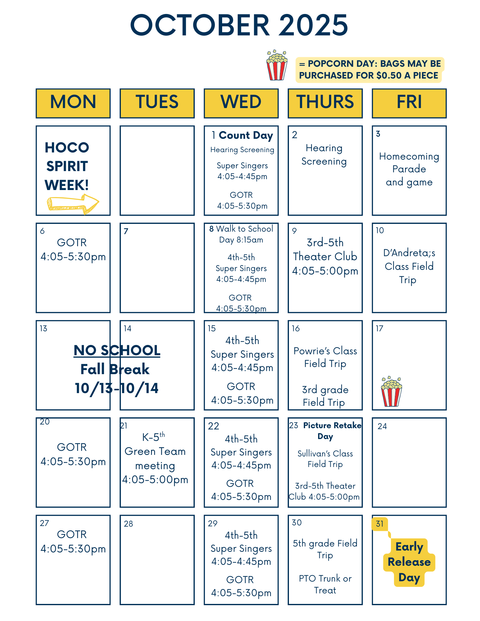 For students who need a picture retake, please make sure to communicate to your child's teacher to confirm. Picture retakes will take place the morning of October 23, 2025.